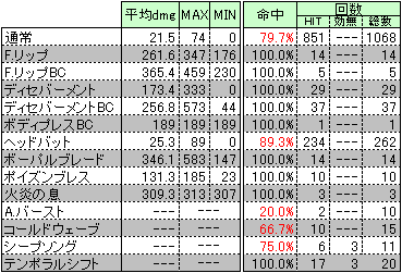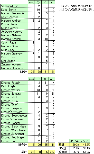 以下の表はヘッドバットを打った敵毎の命中とスタン切れログ確認回数。
